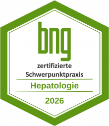 Seit 2011 sind wir als hepatologische Schwerpunktpraxis des Berufsverbandes Bund niedergelassener Gastroenterologen bng zertifiziert. Die Re-Zertifizierung findet alle drei Jahre statt. Die Schwerpunktbezeichnung beinhaltet die regelmäßige und gewissenhafte Behandlung einer bestimmten Anzahl von Patienten mit diversen Lebererkrankungen (viral, autoimmun, alkoholisch, nicht-alkoholisch etc.) nach aktuellem medizinischem Wissensstand. Auf diesem Schwerpunktgebiet bilden wir uns regelmäßig fort und nehmen an nationalen und internationalen Studien teil, um die Weiterentwicklung von Therapie-Ansätzen nachzuweisen und offenzulegen.